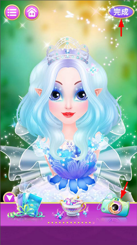 5、最后给公主换上与妆容搭配得体的服装、翅膀,再替换合适的背景拍照留恋就可以啦。