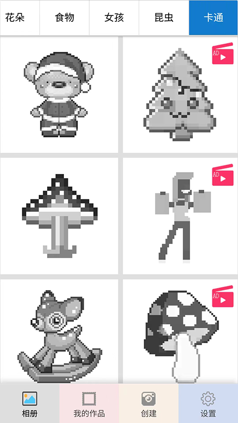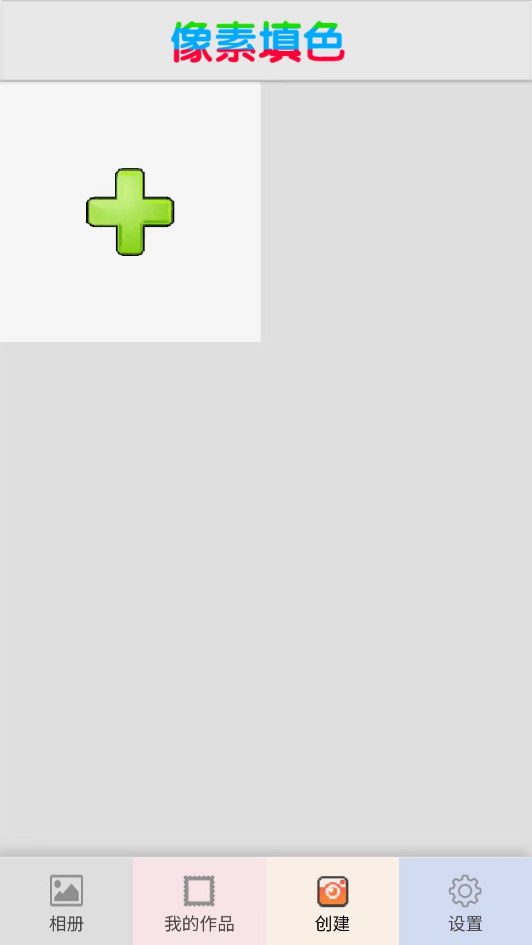 1. 开启像素填色涂鸦大师安卓版本,映入眼帘的有【相册】、【我的作品】、【创建】以及【设置】这四个频道。