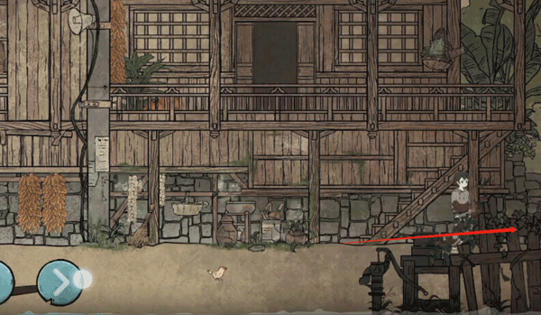 3、向右来到住所,交谈过后走到右边的竹梯旁上楼