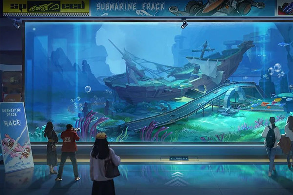 一艘破旧的沉船,无声无息地卧于深邃的水底,为赛场氛围悄然添上几分神秘色彩。与此同时,色彩斑斓的珊瑚鱼群悠然地缓缓游动,而一辆辆各色四驱车则如离弦之箭,在蜿蜒曲折的赛道上疾速穿梭。透过那扇巨大的玻璃幕墙,观众不仅能体验到四驱车赛事带来的紧张与刺激,还能尽情观赏这如梦如幻的绮丽景色。
