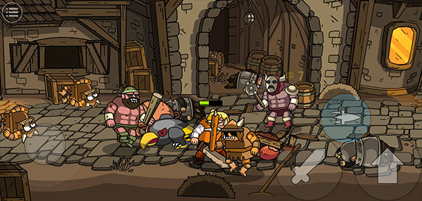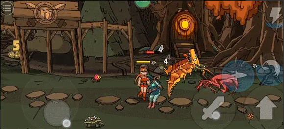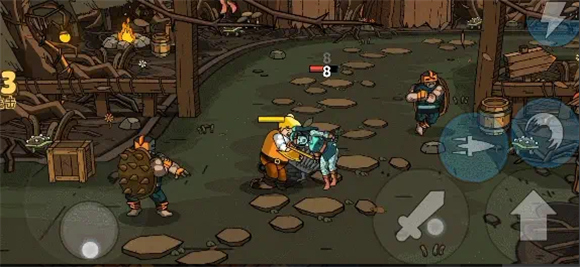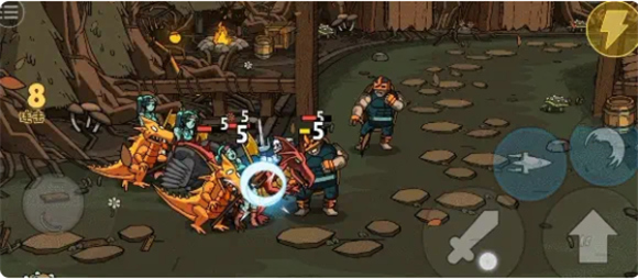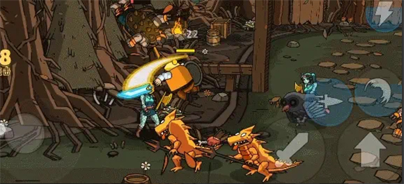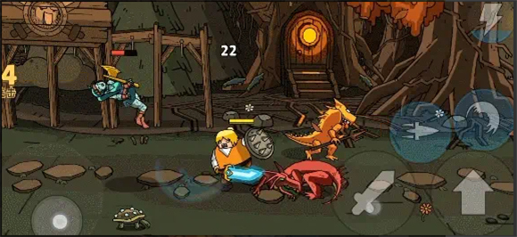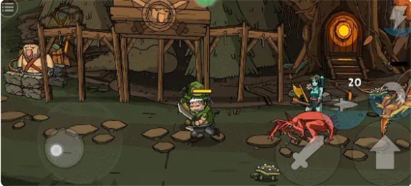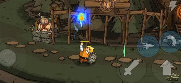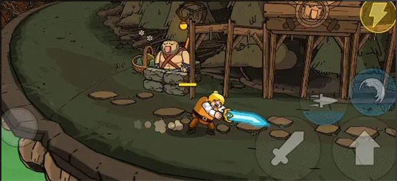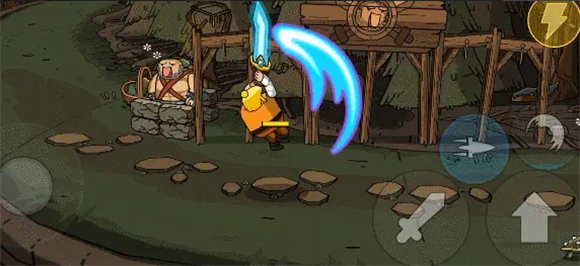 3、这款游戏的操作非常简单,左边是移动,右边是跳跃、攻击、技能,消灭所有敌人就可闯关成功。