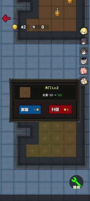 10、点击下方的【拳头】图标,能提升自身攻击速度,进而更迅速地破坏房门。不过在破坏房门的同时,也会遭到房间内建筑的攻击。