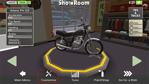 1、打开游戏,进入摩托车页面,点击下方cystomize;