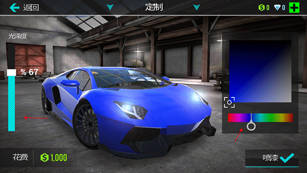 4、右侧能够选择喷漆颜色,左侧能够选择颜色的光泽度,设置完成后,点击右下角进行勾选即可。