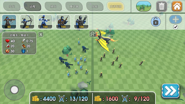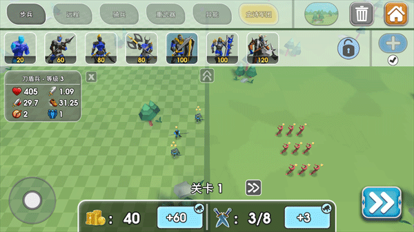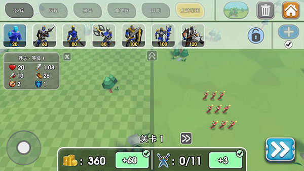 除此之外,玩家不仅要合理规划上阵的兵种,还得对士兵进行升级。升级后的士兵,血量、攻击力、移动速度等属性都会有所提升,而且等级越高,各项属性也就越强。如此一来,便能在战场上击败更多敌人。喜爱这类游戏的玩家不妨下载体验一番。
