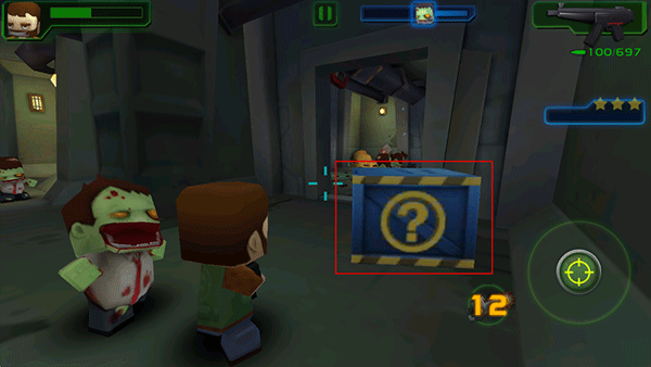 1、刚进入游戏有一个新手引导,点击右侧的瞄准镜来瞄准僵尸,点击旁边的武器来攻击僵尸,教程结束后即可进到游戏主界面。