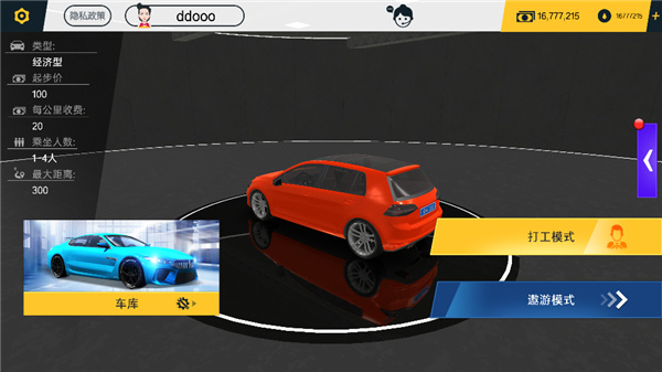 4、这时你已经拥有3辆车了,依照前面三个步骤,通常仅需一小时。跑上几单,凑足1万块,然后选择遨游模式。进入游戏后,别轻信“1000km一个金币”这种说法。这款游戏存在一个bug,那就是在遨游模式下,实际上是1km对应1个金币。跑满1000km,就能实实在在获得1000个金币,用这些金币来买车和购买场景,完全足够。