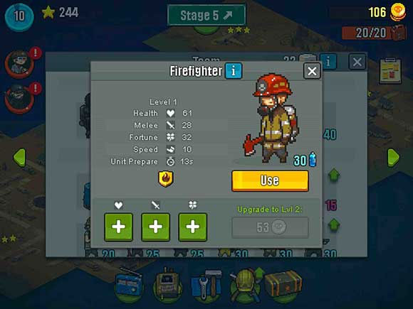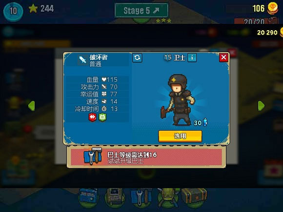 建筑工:配备防弹衣,是前期唯一的防弹单位,打第三大关推荐使用