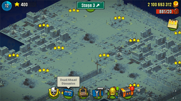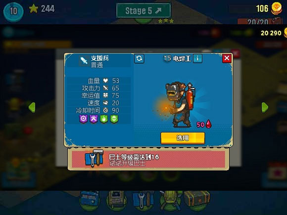 2、第二大关,难度上来了,跑尸增多了,拿三星有困难,需要记住僵尸的路线,掌握对投弹兵的使用方法,实在过不去就卖车(损失巴士血量,让卡尔杀僵尸)。