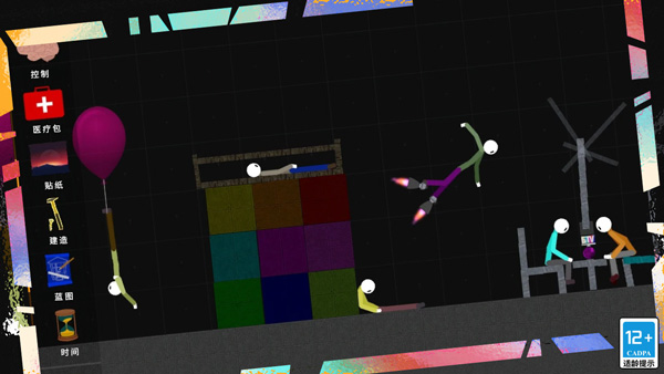 医疗方面:这里有一个医疗箱,箱内第一个物品,作用于生命体后,能赋予其无敌且永生的能力;第二个物品专门用于治疗骨折;第三个物品用于为火柴人输血;第四个物品是绷带,主要起到止血的作用。