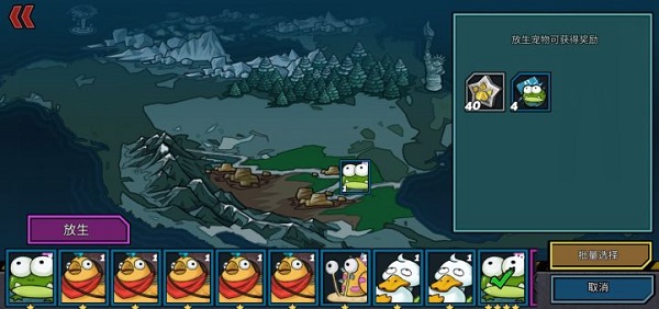 4、宠物放归:放归宠物后会获得和宠物携带技能相同的技能书,获得技能书数量等于技能等级,并获得升级消耗宠物粮的50%(只吃了一绿色宠物粮无返还)