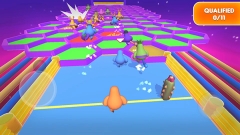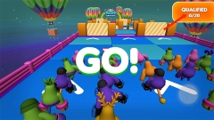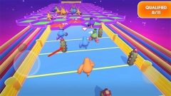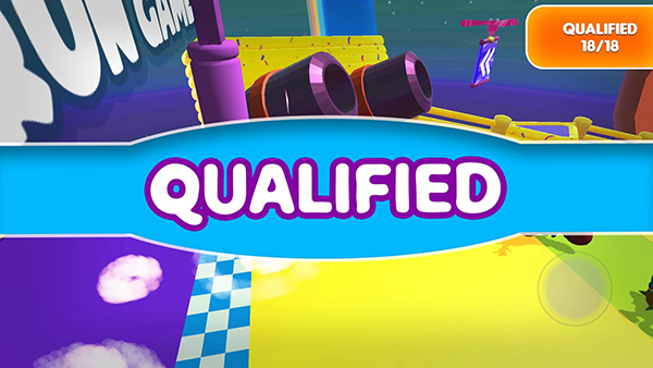 4、倒计时一结束,就迅速朝着前方的终点飞奔而去。此时,右上角会显示【QUALIFIED 20】,这意味着在本局比赛中,前20名抵达终点的选手能够进入下一局比赛。