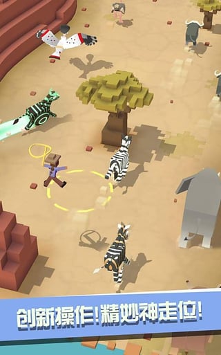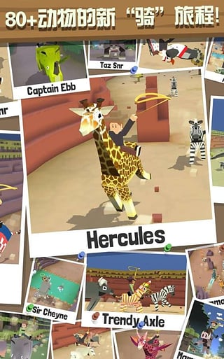 踏入游戏,你将化身为一位充满冒险精神的超凡牛仔(无论真汉子还是女汉子)。在稀树草原、热带沙漠等多样环境间风驰电掣,同时驯服形形色色的珍禽猛兽。一路前行,你得竭尽全力套住更多动物,然后把它们统统带回飞船上的“空中动物园”精心饲养。不仅如此,还要对园区进行豪华升级,如此便能吸引世界各地的游客前来,从而赚取更多金币。这款游戏玩法丰富多样,令人百玩不厌,持续撩拨着玩家“奔跑”的冲动。全新的冒险之旅,让玩家尽情领略如飞般的骑行体验,更能畅享征服带来的愉悦快感!