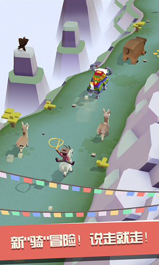 更有意思的是,在游戏里,你会邂逅超多新奇的跑酷玩法。比方说,得骑上长颈鹿越过众多高耸的山峰,才有机会驯服它;要是乘坐鸵鸟,就得在高速状态下坚持跑完数千米,才能看清它的真面目;甚至还得完成撞毁10个灌木丛、跳过三块岩石等高难度动作,才能将它们征服。总而言之,一旦你踏入《疯狂动物园》,欢乐的跑酷之旅就会让你根本停不下来。