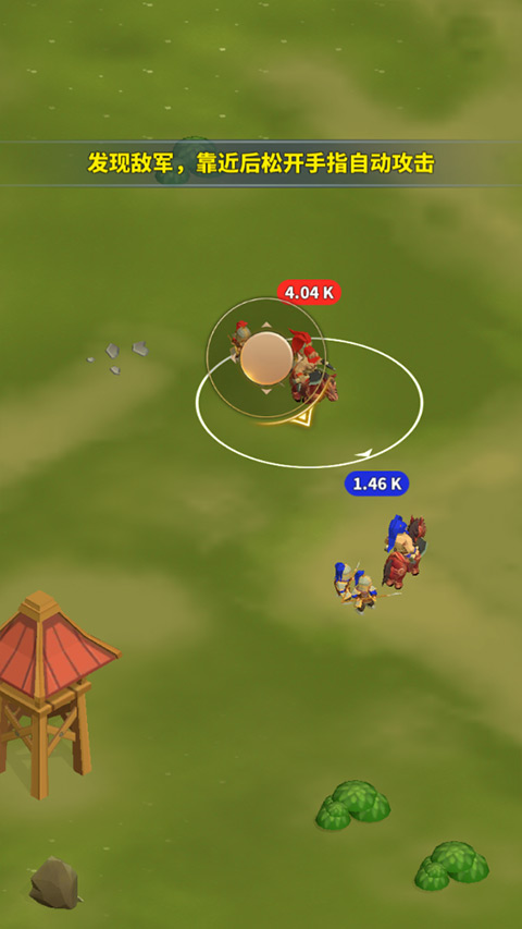 2. 成功招募到小兵后,便会发现敌军。此时,玩家操控人物靠近敌军,松开手指,人物就会自动发起攻击。