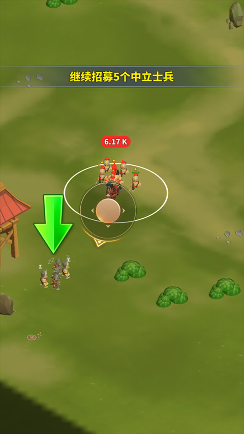 1. 当玩家初次进入游戏时,依照引导提示,通过拖动屏幕来实现移动,靠近中立单位以完成招募。