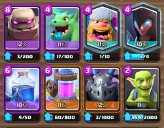 第二种是我自用的一套卡组,与经典卡组差异较大。我舍弃了费用高的圣水收集器、大闪以及地面防御单位哥布林,替换为毒药、飓风和小电这三个更为灵活的法术。如此一来,卡组变得更加灵活多变,不管是打防反还是主动进攻,表现都很出色。因为有毒药,进攻时更具压迫力;飓风能防御野猪这类偷鸡战术;两费的小电主要用来打断电磁炮、地狱塔、地狱飞龙等,虽说它伤害低,但和大闪一样具备打断效果。