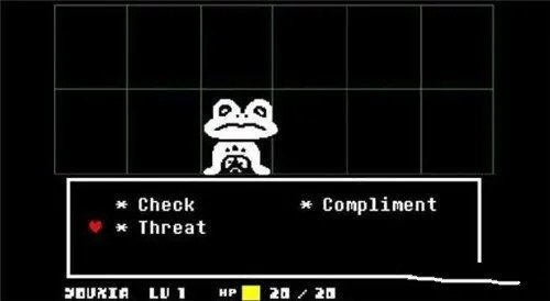 除了击杀怪物,玩家还能在“act”动作选项里挑选相应行为。选择后,怪物会有对应的反应,并通过文字或画面呈现在上方的对话框中。