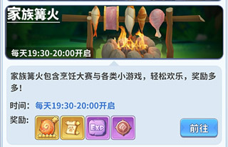 家族篝火包含烹饪大赛和各类小游戏,轻松欢快,奖励多多!