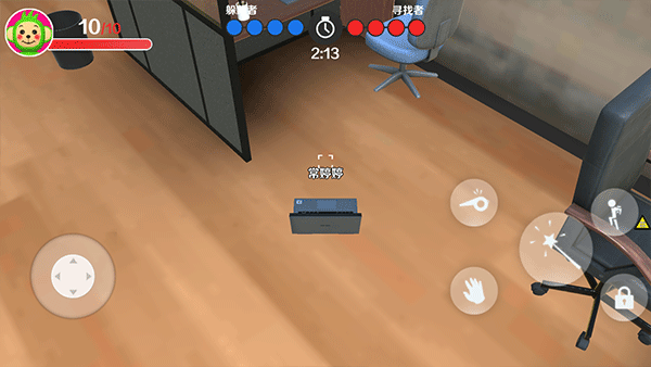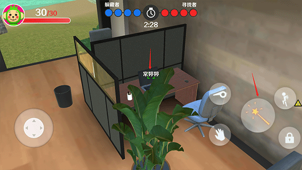 3、在游戏中,躲藏者需把自身变作场景里的各类物品以实现躲藏。具体操作是,将视角对准想要变身的物品,然后点击魔法棒按钮。