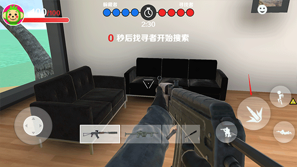 5、寻找者的任务是找出藏在房间里的所有躲藏者。在寻找过程中,寻找者持有武器,可以用手中武器对可疑物品进行射击。
