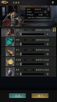 武将的忠诚度可以通过赐予武将名品进行提升。而且名品可通过击败5级及以上的乱捕,和参加各种活动获得。