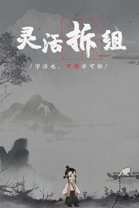 游戏场景中许多物体可以转化为对应含义的字,通过汉字结构的拆分与重组,变为新的字。