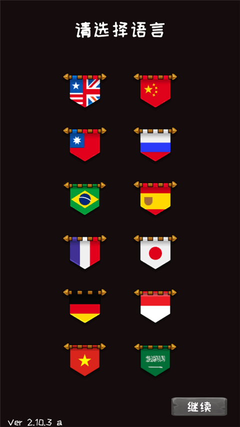 1、在本站免费下载该游戏,安装完成后打开,玩家完全能够依据自身需求选择“语言”,接着点击“继续”。