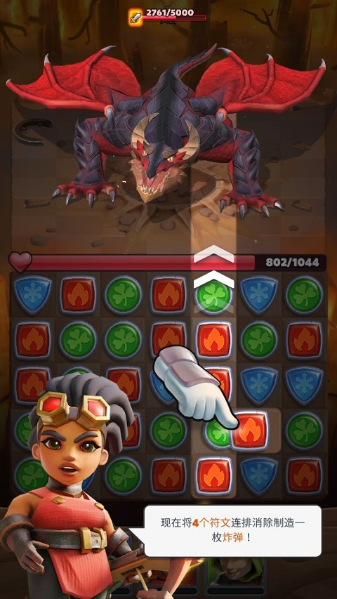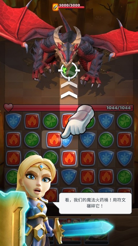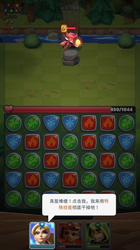 1、进入游戏,这是一款基于“三消”规则的RPG游戏,玩家仅需把同行或同列的元素放置到一起,就能完成相应的攻击招式。