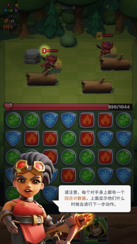 4、请注意:每个对手身上都设有一个回合计数器,该计数器会显示他们何时进行下一步动作。