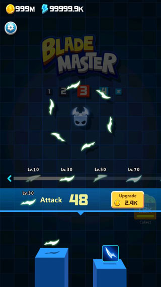 刀锋大师的最新版本,是一款充满娱乐性的休闲动作类游戏。它通常也被叫做刀剑大师、Blade Master或者旋转大师。这款游戏的画风简洁,玩法新颖独特,和年初曾风靡一时的《消灭病毒》游戏有几分相像。在游戏里,玩家要操控周身环绕飞镖的怪兽,目标是消灭迎面冲来的怪物。游戏具备对内、外侧飞镖进行升级培养的系统,而且就算离线,玩家也能获得额外的金币收益。游戏中还有各式各样炫酷的飞刀造型,以及无尽的闯关推图玩法,特别适合大家在闲暇无聊时用来消遣娱乐。