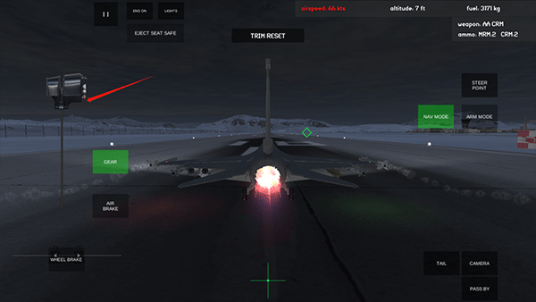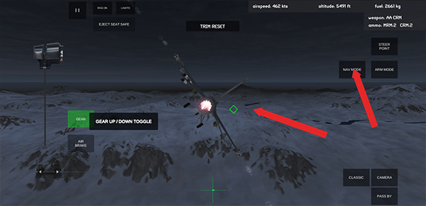 7、直到将飞机飞行至绿色标记点即可(不显示标记点时,可以点击屏幕上的nav mode开启导航)