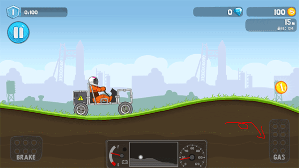 2、点击右侧的“gas”按钮,可使赛车加速行驶,而“brake”按键用于控制赛车倒车。