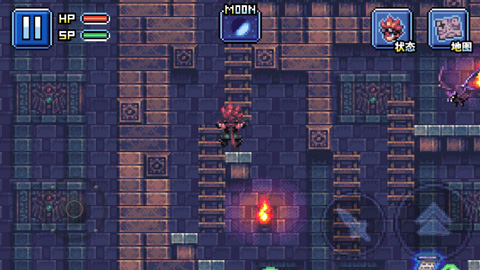 一、进入游戏后,点击“新游戏”正式进入闯关页面。此时,你会发现地图左侧有一个控制盘。只需按住控制盘中心,通过上下左右拖动控制盘,就能操控英雄前往你期望的方向。而在正式进入的闯关页面右侧,有一个红色按键和一个蓝色按键,其中红色按键用于控制攻击,蓝色按键则是跳跃按键。