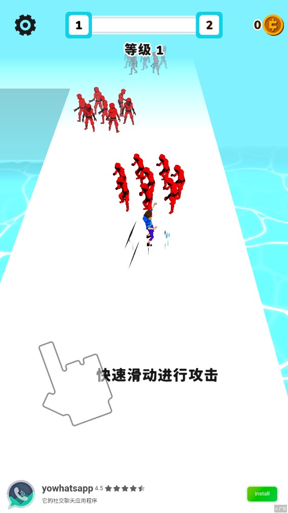 游戏的玩法十分简单,只需滑动屏幕就能杀敌,这和割草类手游有着相似之处。长按屏幕可以蓄力发动攻击,这种攻击不仅伤害高,范围也广,往往能一举消灭大片敌人。然而,直接冲进敌群进行蓄力攻击并非明智之选,稍有不慎,就可能被敌人偷袭得手。但要是采用连续滑动屏幕的操作方式,基本就不会有太大问题。需要留意的是,要躲避忍者发射的飞镖,他们属于远程攻击,玩家可以把握出拳的时机来进行抵挡。
