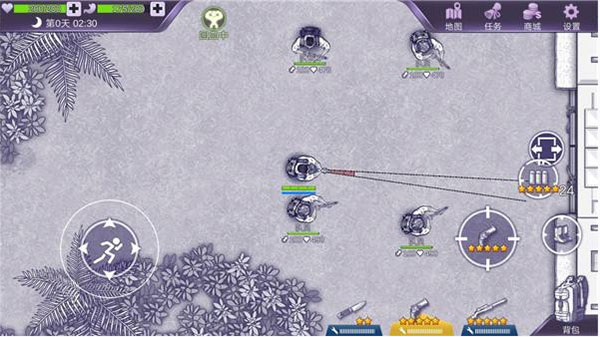 1. 游戏运用俯视视角,副本不存在迷雾,所有地形与怪物一览无余。究竟是直面挑战,还是暂避锋芒,全由您自行抉择;采用双轮盘操作方式,玩家能够在移动的同时进行射击,即便武器处于蓄力状态,也可凭借走位避开怪物与丧尸的攻击。