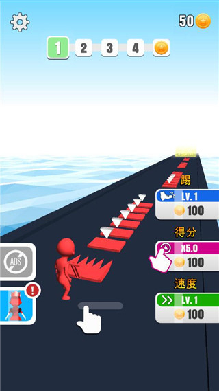 1、进入游戏后,指尖点击,即可控制小人左右移动不断躲避障碍物向前奔跑