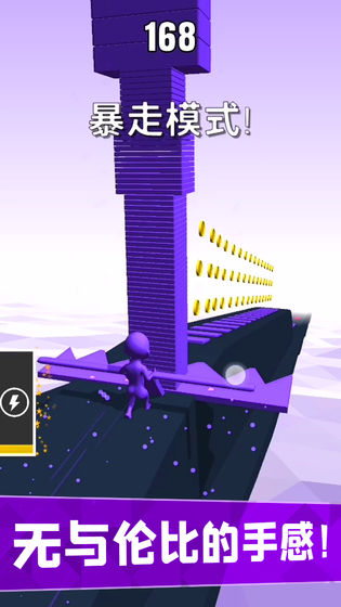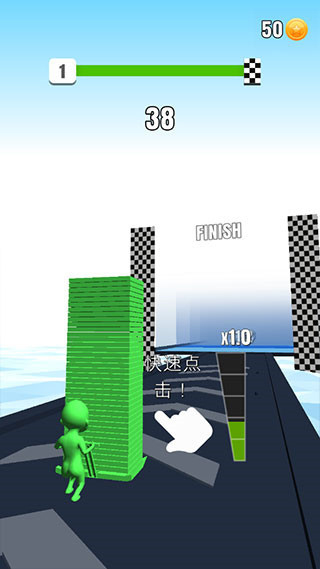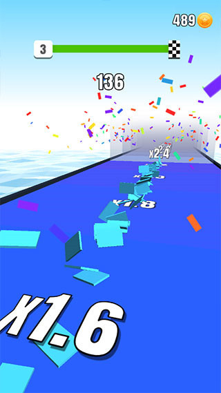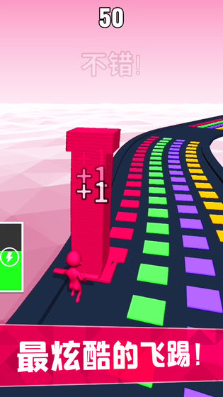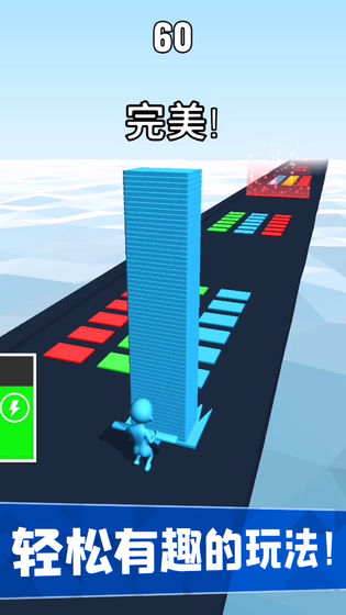 3、在正确路径上把所有砖块进行叠加,要是砖块颜色叠加出现错误,砖块数量便会相应减少。
