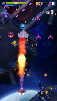 2、除了主要的宇宙飞船,还有两名助手能提升战斗力。可通过使用激光导弹、巨型弹药以及磁铁,来升级你的攻击强度与宇宙飞船的速度。