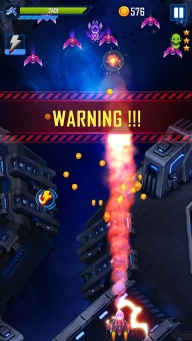 6、当出现WARNING提示的时候,代表即将出现关卡BOSS,要小心战斗,