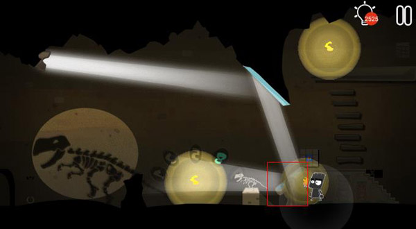 第十五步:对下图所示位置处红框内的镜片进行调整,从而在墙上得到一张恐龙遗骸的图片。