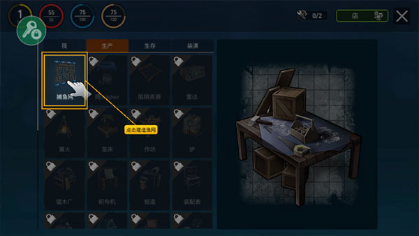 2、点击建造渔网。