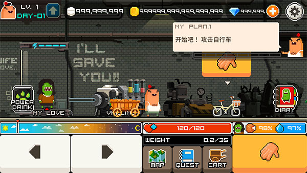 回家之后慢慢爬到垃圾站,除了指环,其他都卖掉〔指环加长暴走时间〕。