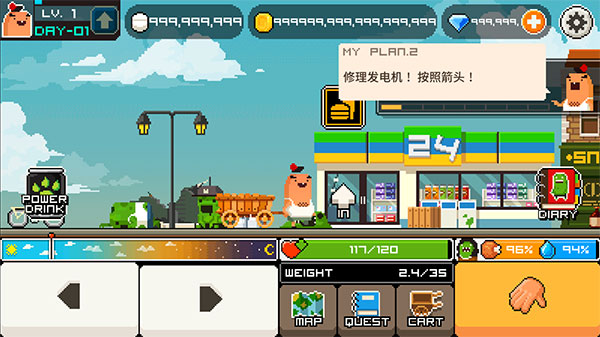 1、搭配上可爱的像素图,你只需持续点击,收集能源,就能完成整个游戏流程!