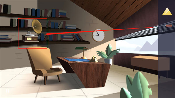10、进入客厅二楼左侧房间,点开留声机少了一个摇柄,放上唱片,摇起来;