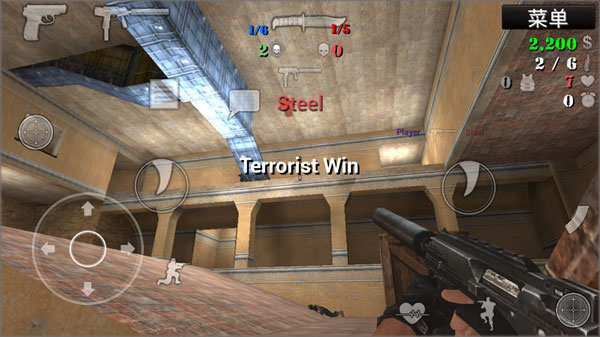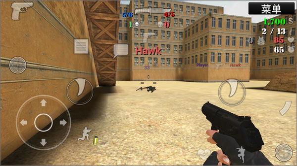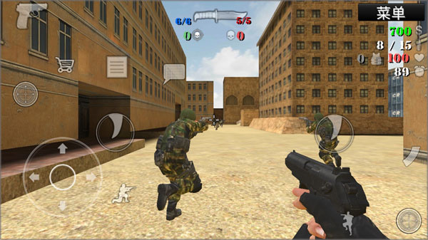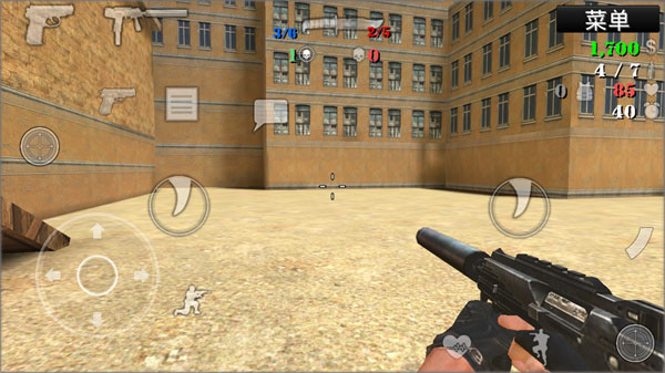 5、开始进入游戏,操作极为简单。左边可进行方向控制、下蹲、购买等操作,右边用于攻击,实际上两边都能执行攻击动作,大家可依据自身喜好来选择。
