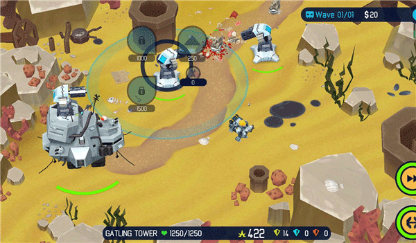 1、放置不同位置的防御塔,能够抵御那些敌人的攻击。