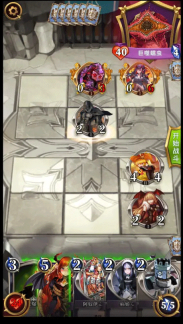 3、对战双方同时卡牌部署设置,游戏没有“你,或对手回合”的概念,每一个回合中,双方同时进行布阵;