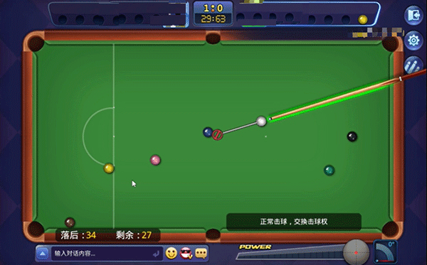 -右上方的母球则是调整击球的角度,花式旋转球便是通过这里来调整击打。加上优秀的物理引擎的运算,完美模拟了真实桌球的打击感和运动感。