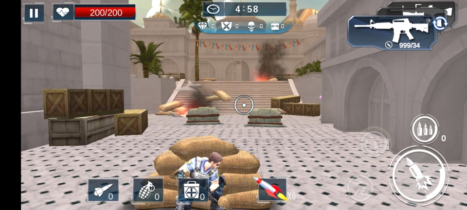 3、游戏操作十分简便,屏幕左侧用于控制人物走位,右侧用来射击敌人,游戏过程中要记得注意掩蔽自身哦。